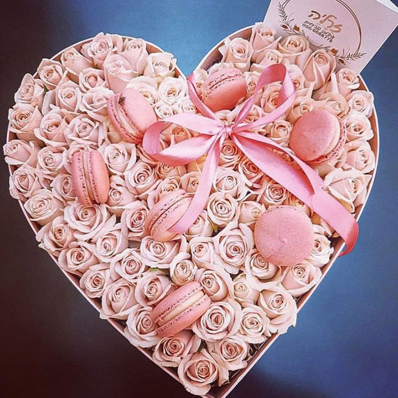 #858 מארז פרחי העונה עם עוגיות מקרון